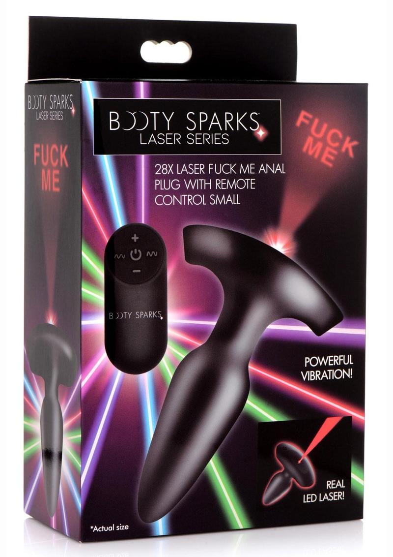 Booty Sparks Laser Fuck Me Plug Small projects naughty words while pulsing inside. Fun, flashy plug.